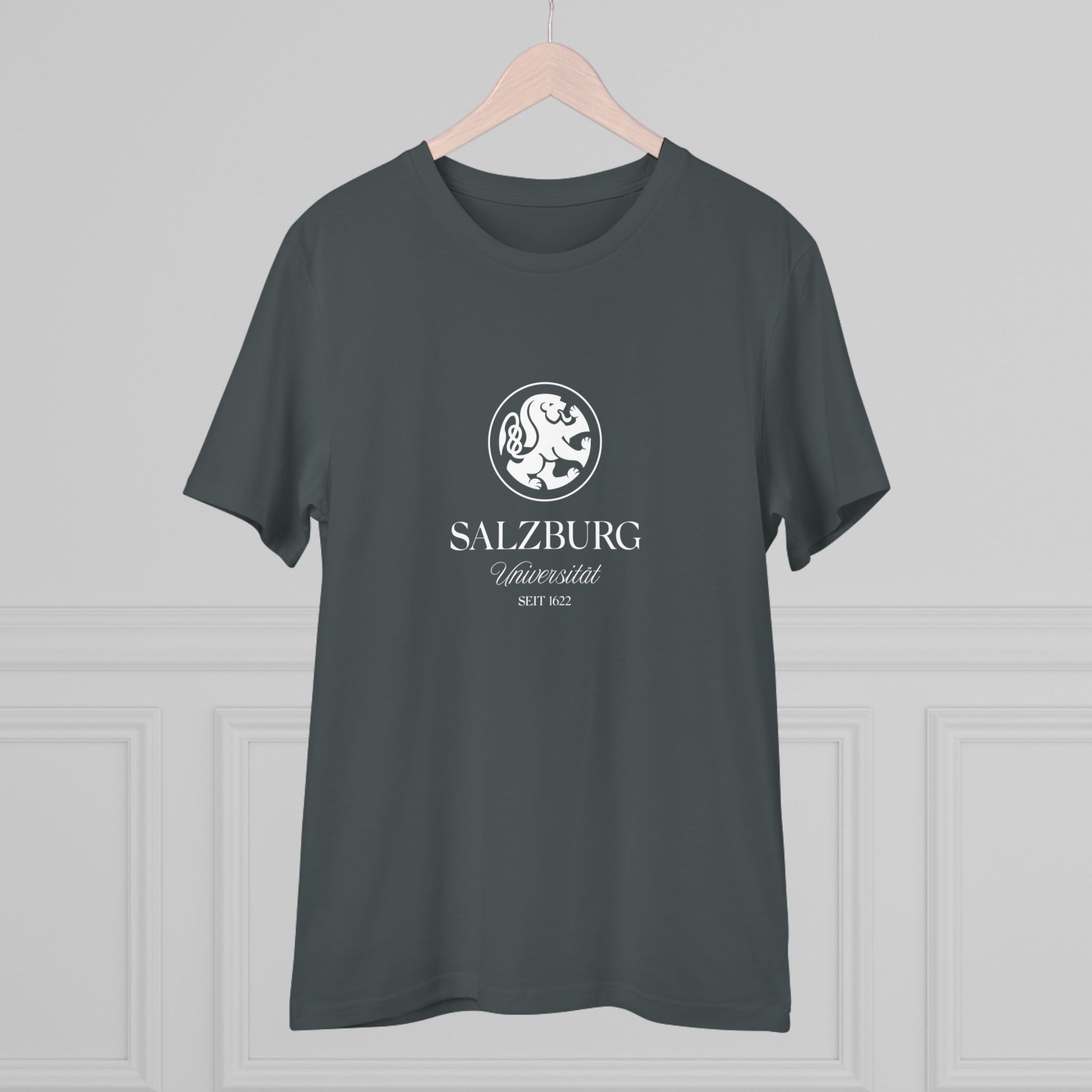Zeige deine Verbundenheit zur Universität Salzburg mit diesem stylischen, grauen T-Shirt! Mit dem markanten Uni-Logo, dem Gründungsjahr und der Stadt Salzburg ist dieses Shirt ein perfektes Symbol für deine akademische Reise an dieser renommierten Universität. Der komfortable Schnitt und der klassische Halsausschnitt machen es ideal für den täglichen Gebrauch – sowohl für den Campus als auch in der Freizeit.